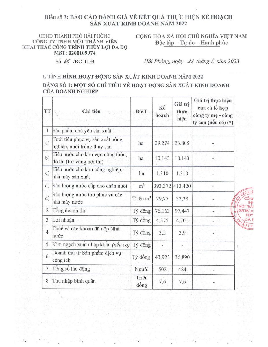 Báo cáo đánh giá về kết quả thực hiện kế hoạch sản xuất kinh doanh năm 2022