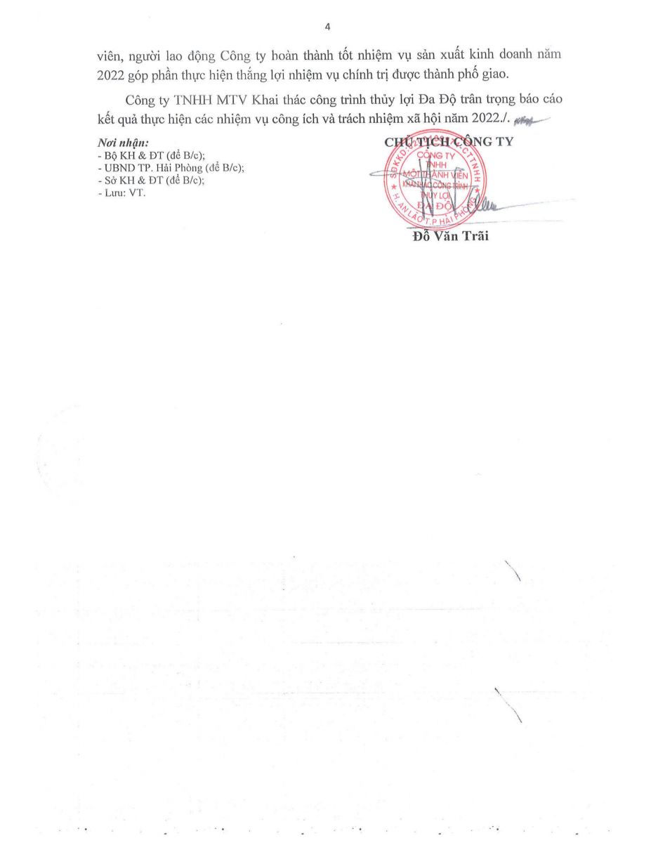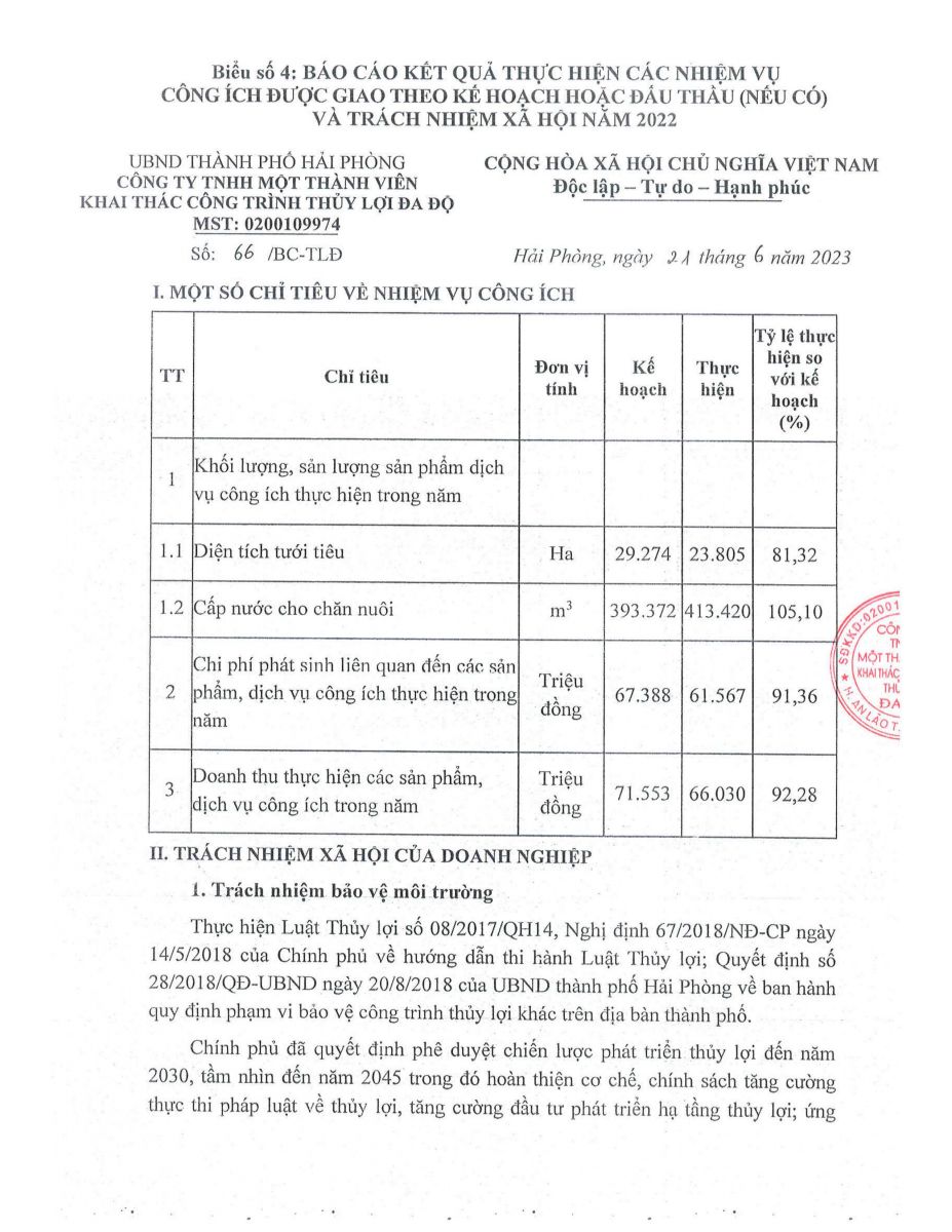 BÁO CÁO KẾT QUẢ THỰC HIỆN CÁC NHIỆM VỤ CÔNG ÍCH ĐƯỢC GIAO THEO KẾ HOẠCH VÀ TRÁCH NHIỆM XÃ HỘI KHÁC NĂM 2022