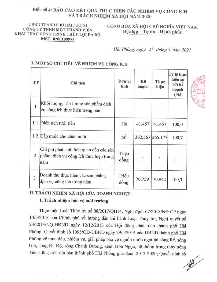 BÁO CÁO KẾT QUẢ THỰC HIỆN NHIỆM VỤ CÔNG ÍCH VÀ TRÁCH NHIỆM XÃ HỘI NĂM 2020