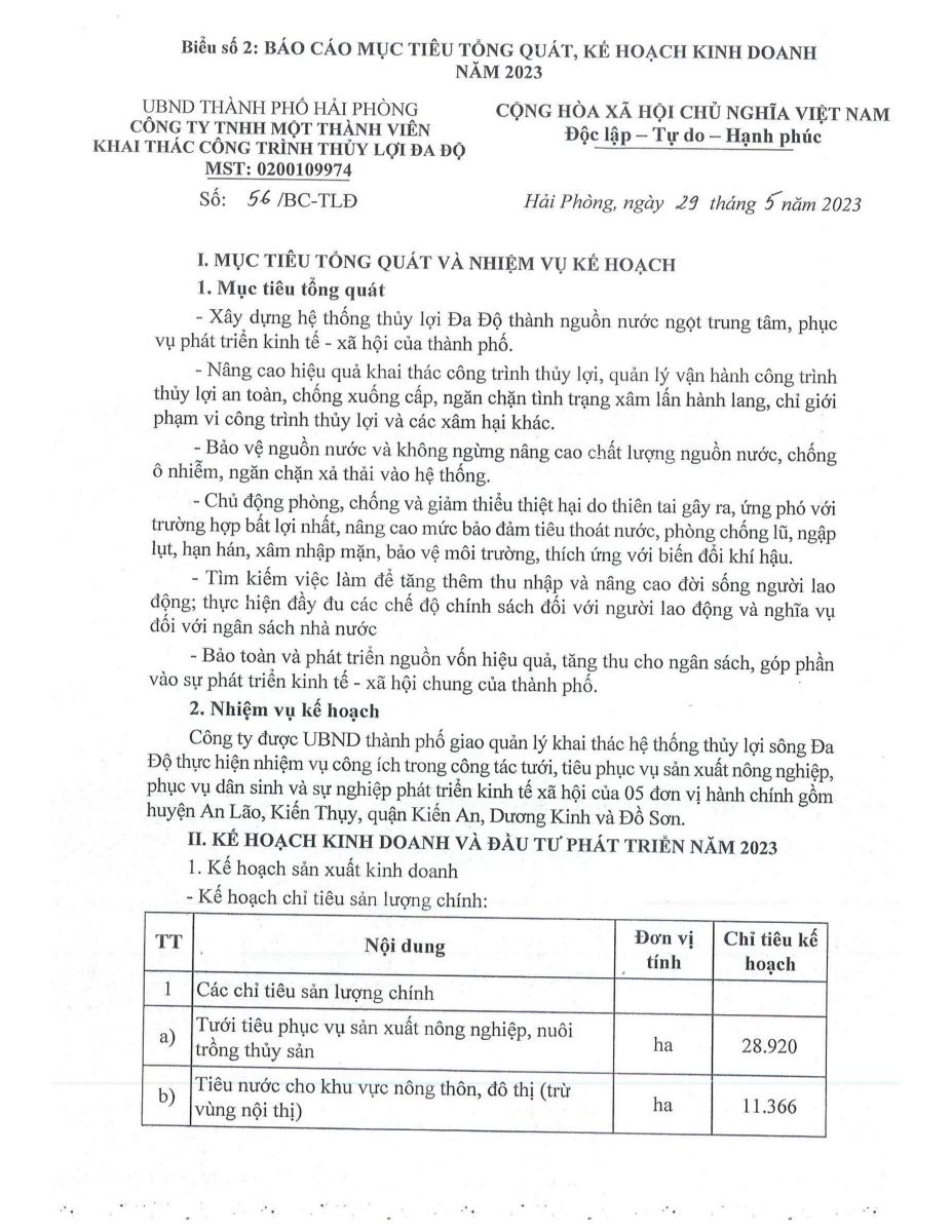 BÁO CÁO MỤC TIÊU TỔNG QUÁT, KẾ HOẠCH KINH DOANH NĂM 2023