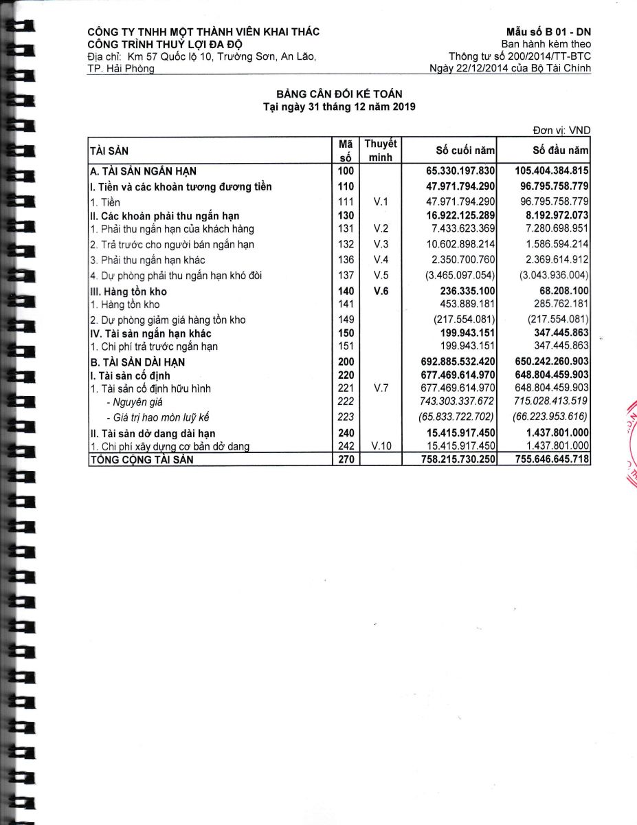 BÁO CÁO TÀI CHÍNH NĂM 2019