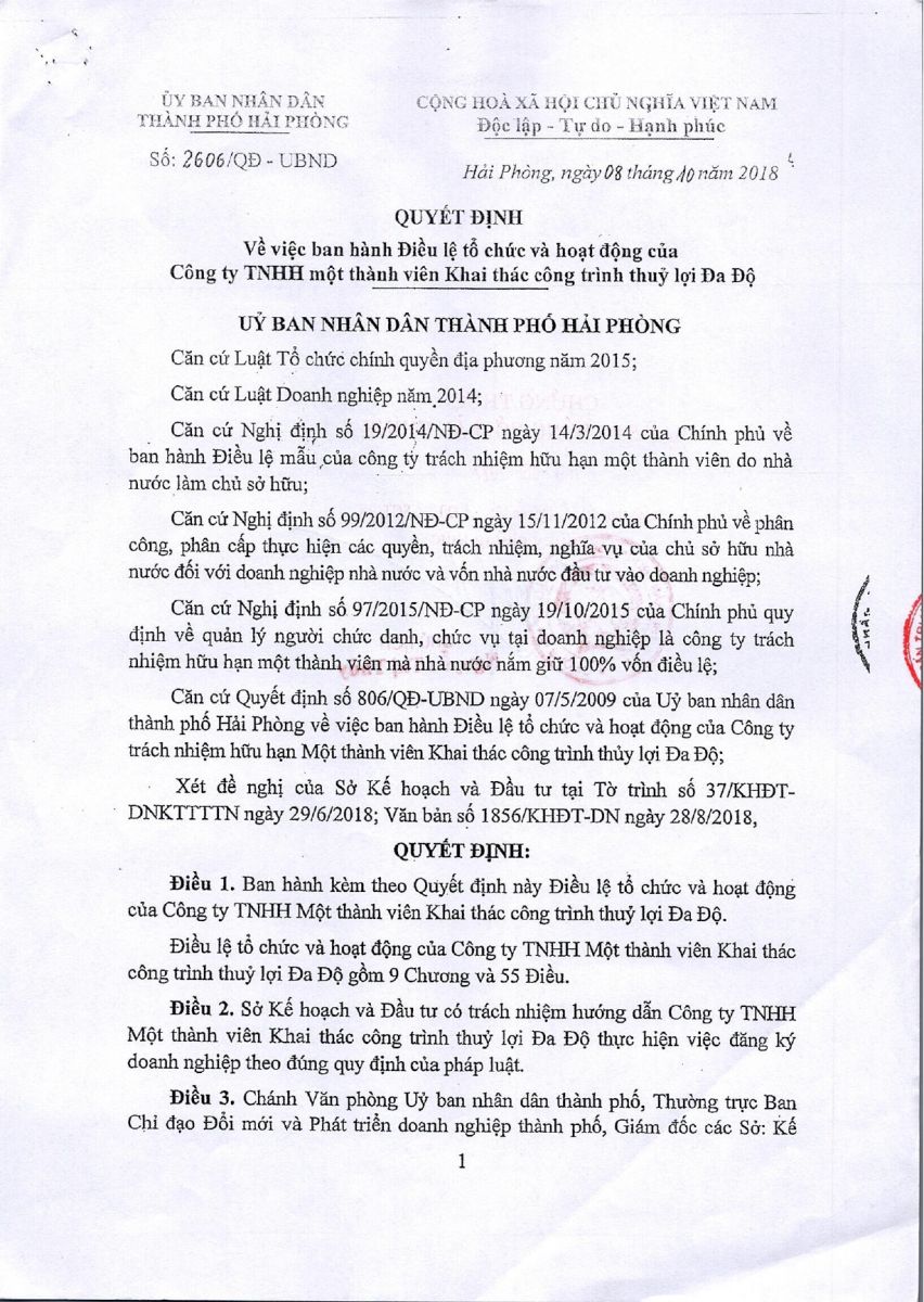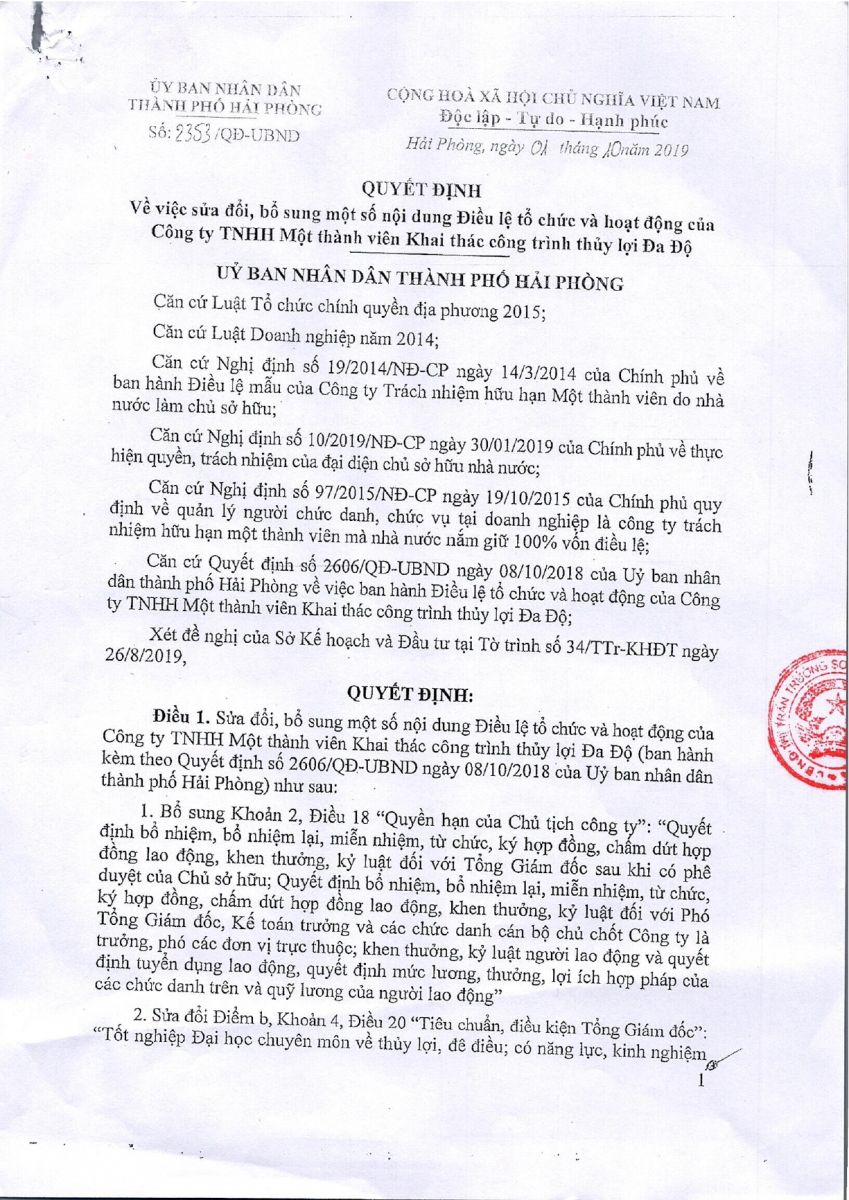 ĐIỀU LỆ TỔ CHỨC VÀ HOẠT ĐỘNG CÔNG TY NĂM 2019