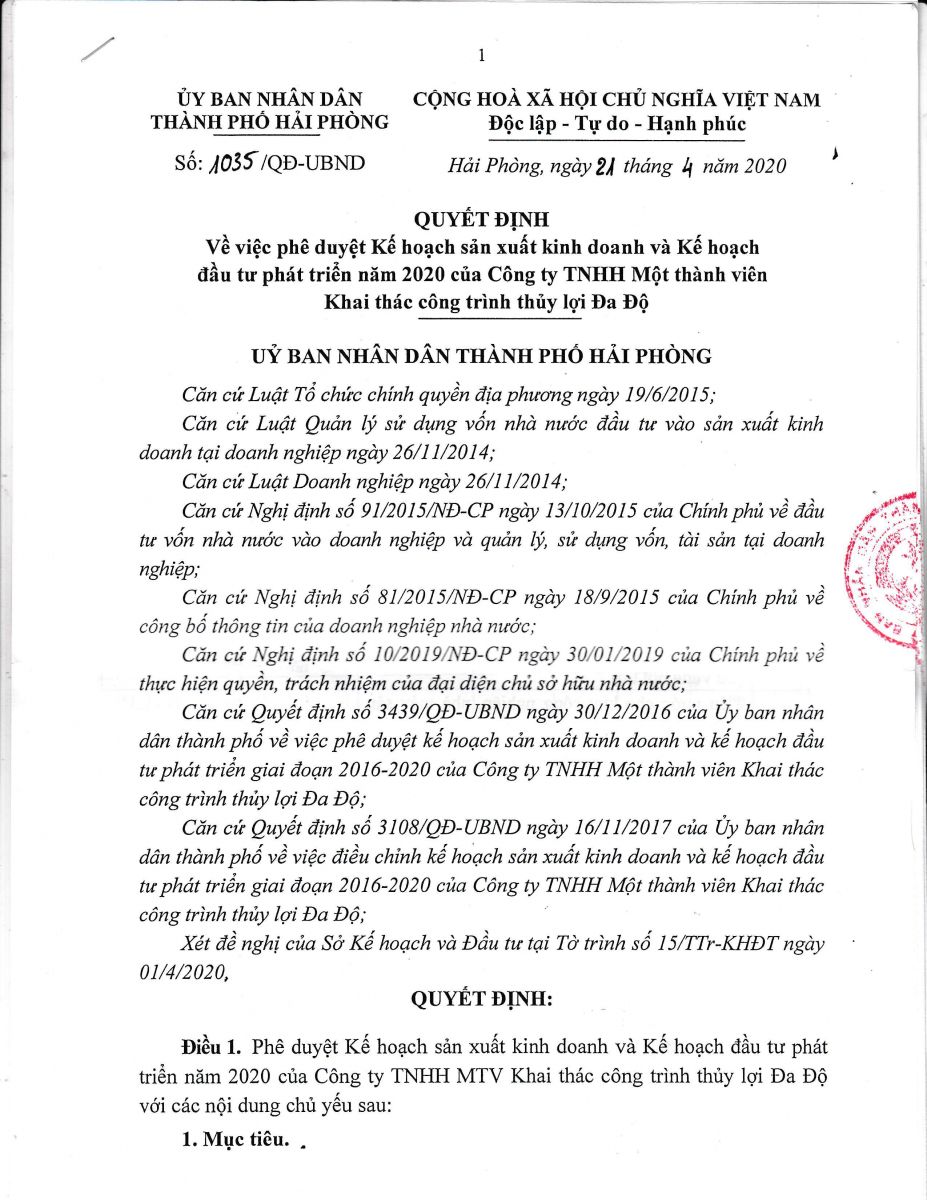 VÀ KẾ HOẠCH ĐẦU TƯ PHÁT TRIỂN - NĂM 2020