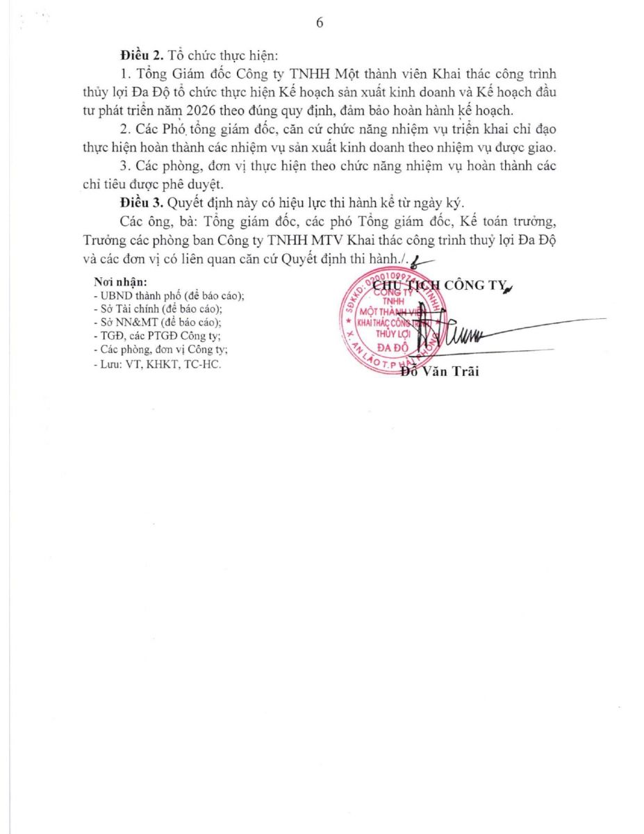 Quyết định về việc ban hành Kế hoạch sản xuất kinh doanh năm 2026