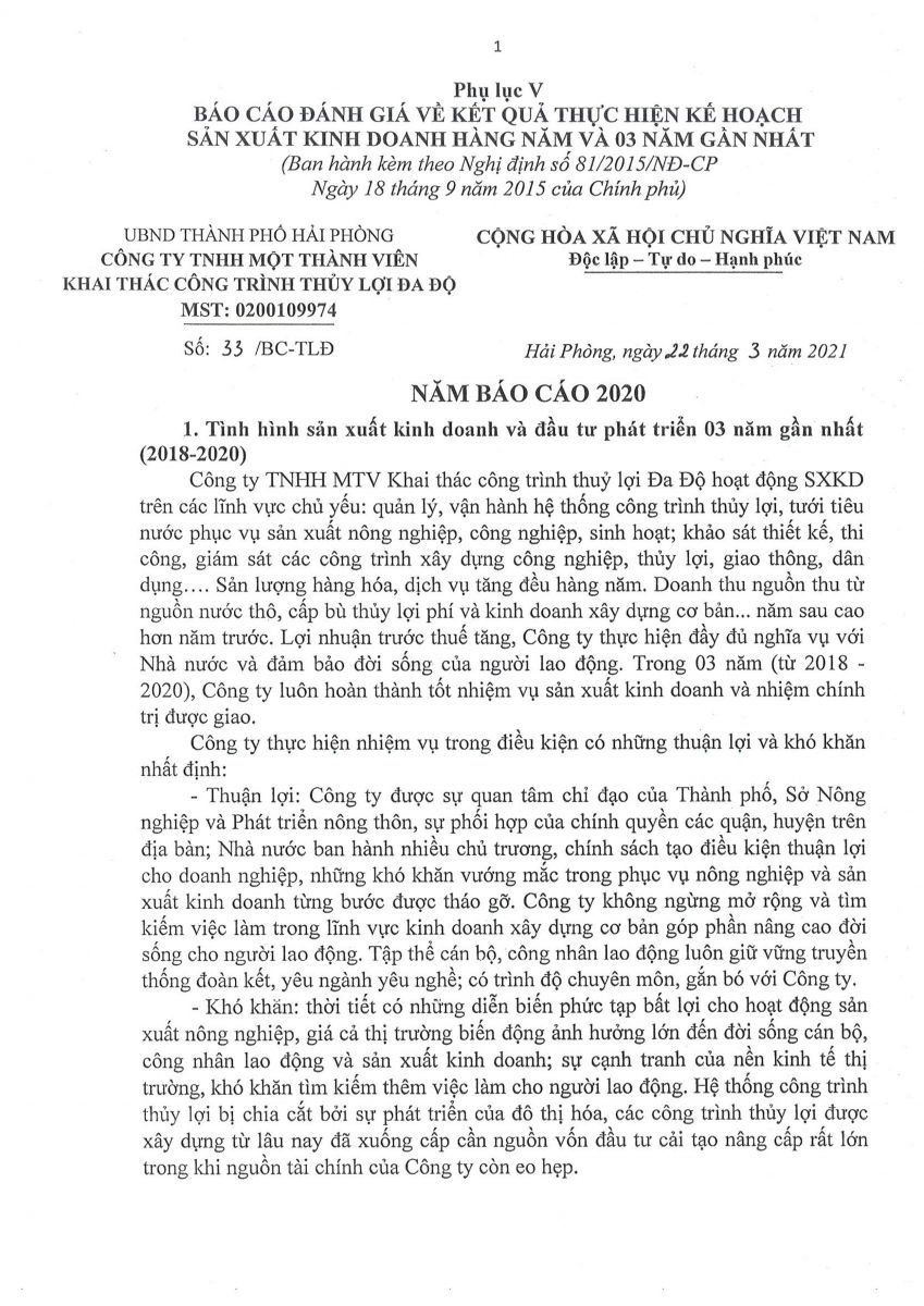 TÌNH HÌNH SẢN XUẤT KINH DOANH VÀ ĐẦU TƯ PHÁT TRIỂN 3 NĂM (2018-2020)