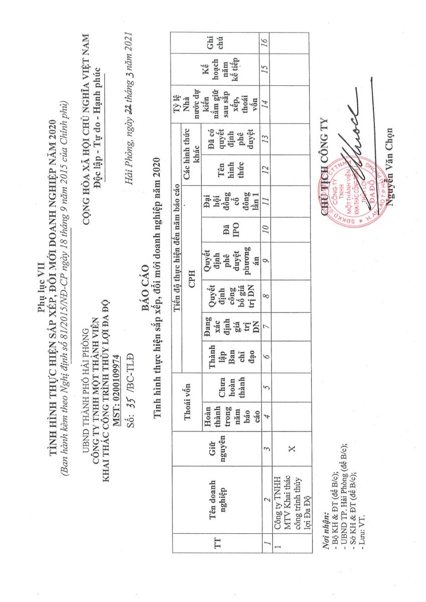TÌNH HÌNH THỰC HIỆN SẮP XẾP ĐỔI MỚI DOANH NGHIỆP NĂM 2020