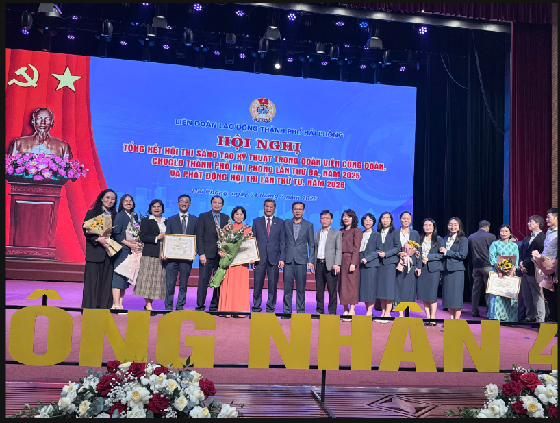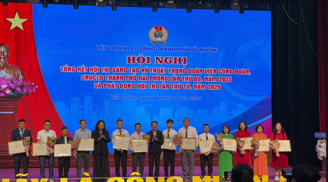 Sáng ngày 04.3.2026, tại Cung văn hóa hữu nghị Việt Tiệp Hải Phòng, Liên đoàn lao động thành phố đã tổ chức thành công tổng kết hội thi sáng tạo kỹ thuật đoàn viên, công đoàn CNVCLĐ lần thứ 3, năm 2025 và phát động hội thi lần thứ 4, năm 2026.