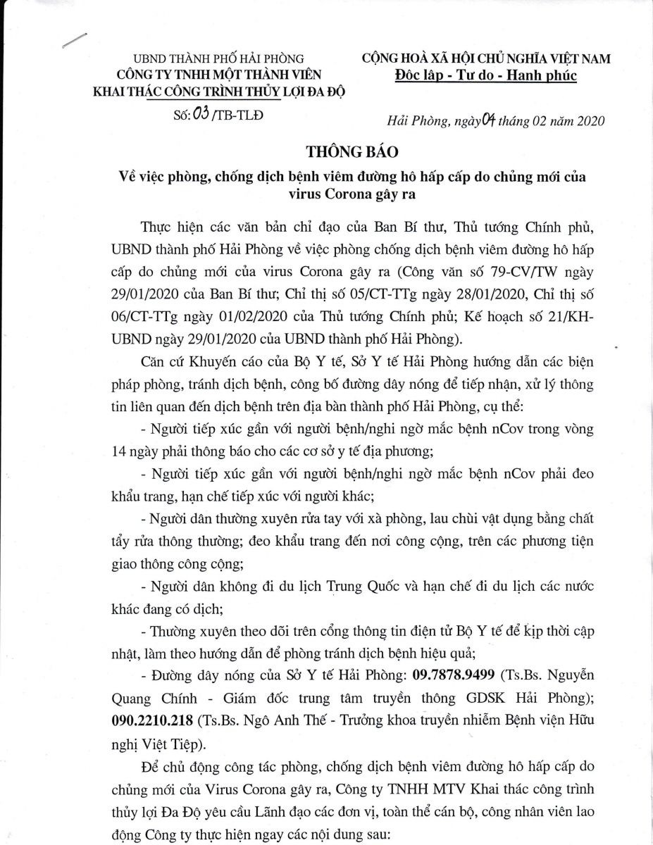 Về việc phòng, chống dịch bệnh viêm đường hô hấp cấp do chủng mới của virus CORONA gây ra